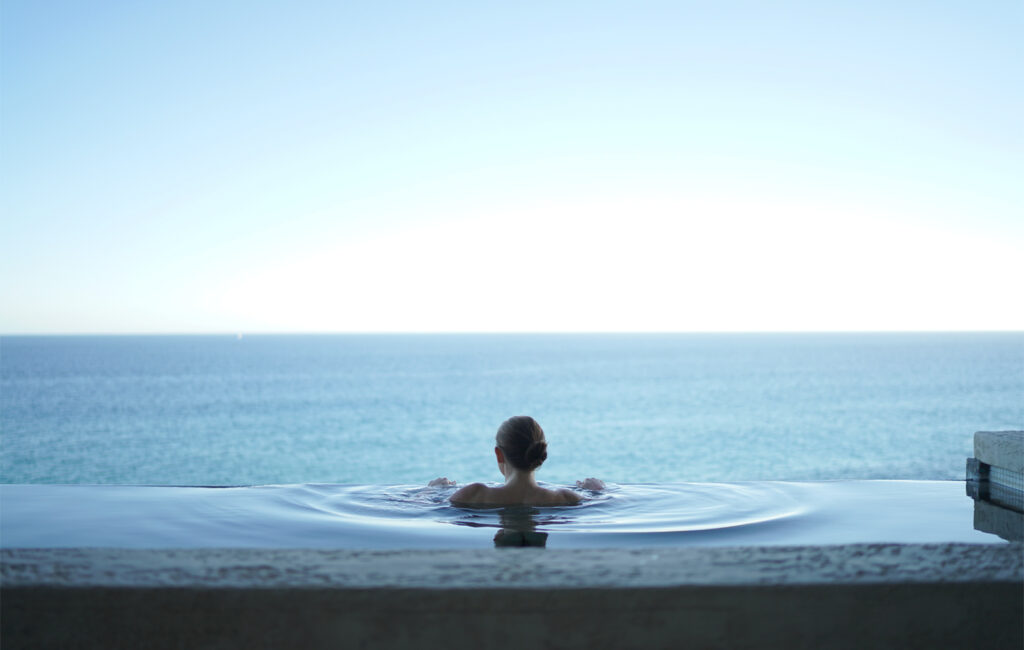 Cool down in the outdoor pool overlooking marvelous shore of Indonesian sea.